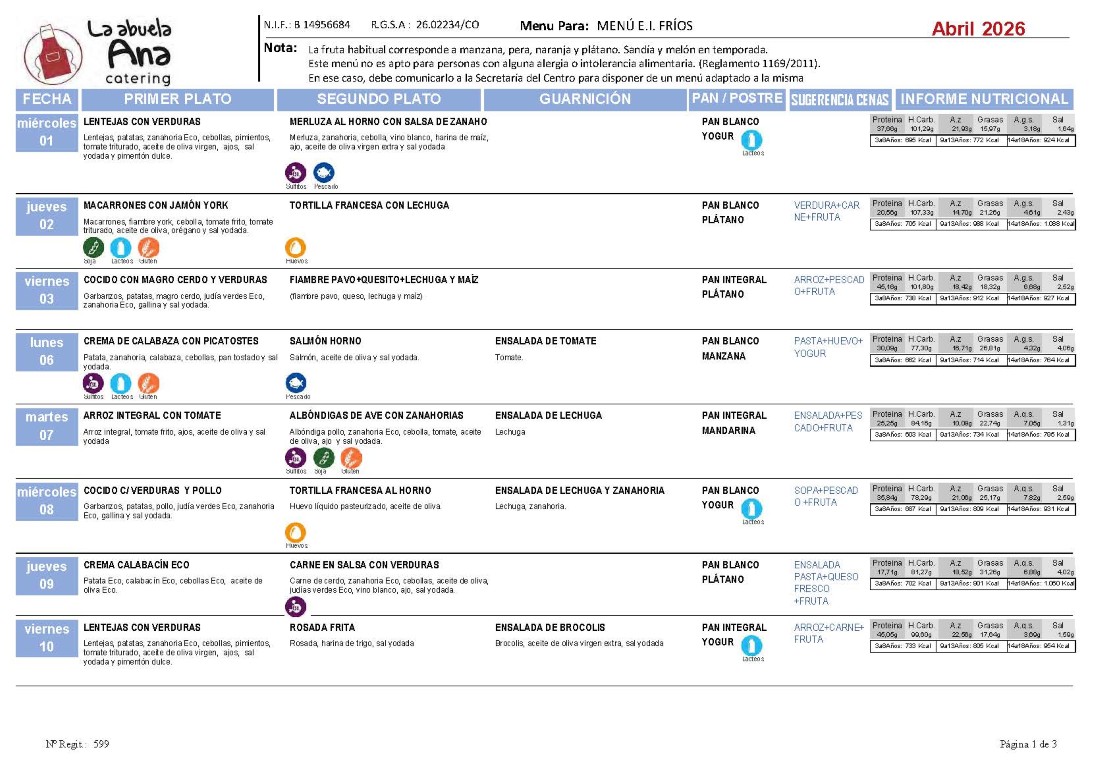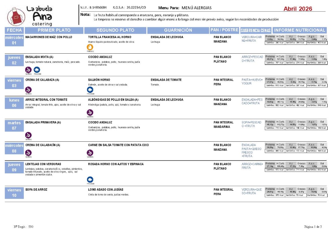 Aquí podeis consultar -y descargaros- el menú de abril y el menú de alergias.